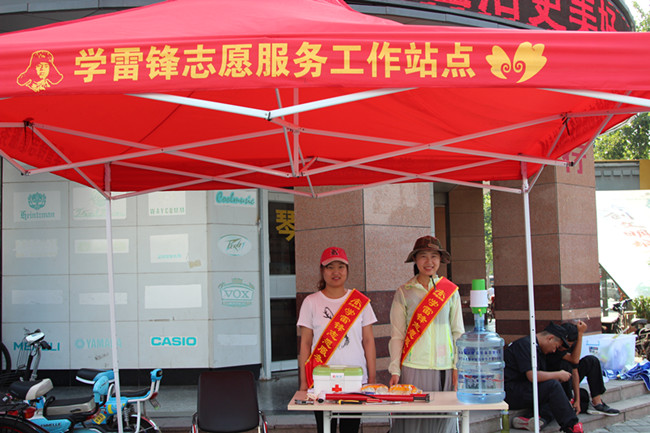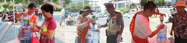 活動當(dāng)天,最高氣溫高達(dá)40度,志愿者們頂著炎炎烈日,為過往市民提供飲用水、打氣筒、雨傘、扳子、鉗子、螺絲刀、藿香正氣水、速效救心丸、酒精藥棉等一系列救急便民措施,連續(xù)服務(wù)了近7個小時,雖然汗流浹背,但依然面帶微笑,為市民提供喝水乘涼便民服務(wù),帶去陣陣清涼。當(dāng)市民了解到是濟南市政志愿者的時候,紛紛詢問起公司承建的重點工程項目,對公司的工程形象、進(jìn)度、質(zhì)量和安全文明施工稱贊不已,對公司志愿者積極投身到創(chuàng)城、社會公益事業(yè)等活動中大加贊揚。