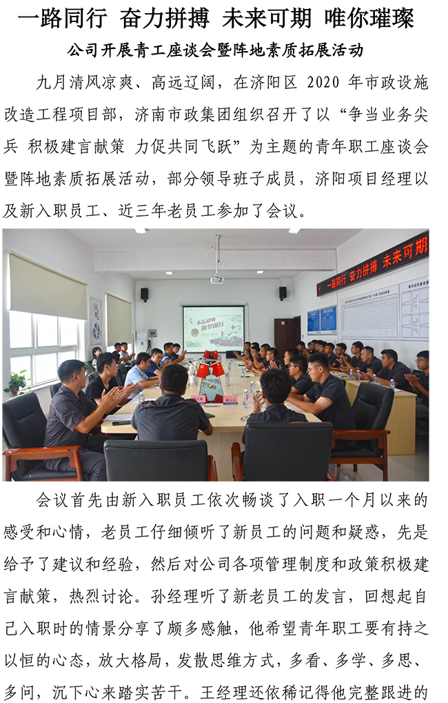 一路同行 奮力拼搏 未來可期 唯你璀璨——公司開展青工座談會暨陣地素質(zhì)拓展活動