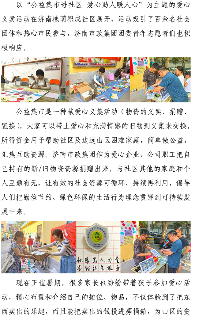 公益集市進(jìn)社區(qū) 愛心助人暖人心——濟(jì)南市政集團(tuán)團(tuán)委獻(xiàn)愛心活動(dòng)