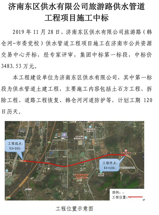 濟南東區(qū)供水有限公司旅游路供水管道工程項目施工中標