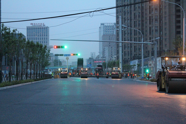 該工程自立項、規(guī)劃、招投標(biāo)、開工建設(shè)到順利完工無一不受到社會各界的廣泛關(guān)注。濟南市市政工程有限公司緯十二路項目部分工明確、有序協(xié)調(diào),經(jīng)過三天兩夜的連續(xù)不間斷奮戰(zhàn),順利圓滿的完成了攤鋪任務(wù)。
